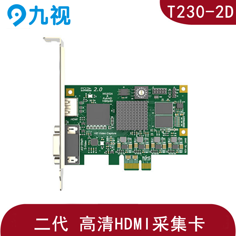 产品型号 :T230-2D 产品名称 :二代单路(HDMI/分量/S端子/CVBS)高清采集卡 T230-2D 二代单路(HDMI、分量、S端子、CVBS)高清采集卡 Pro Capture HDMI 技术规格 2016年九视电子创造性的对T230-2D单路(HDMI、分量、S端子、CVBS)采集卡进行升级为二代T230-2D,支